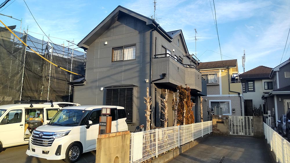 二度目の外壁塗装をするならことぶきさんにお願いしようと決めていました。今回は色をベージュ系からグレー系に変えましたが、出来栄えにも満足しています。(武蔵村山市I様)